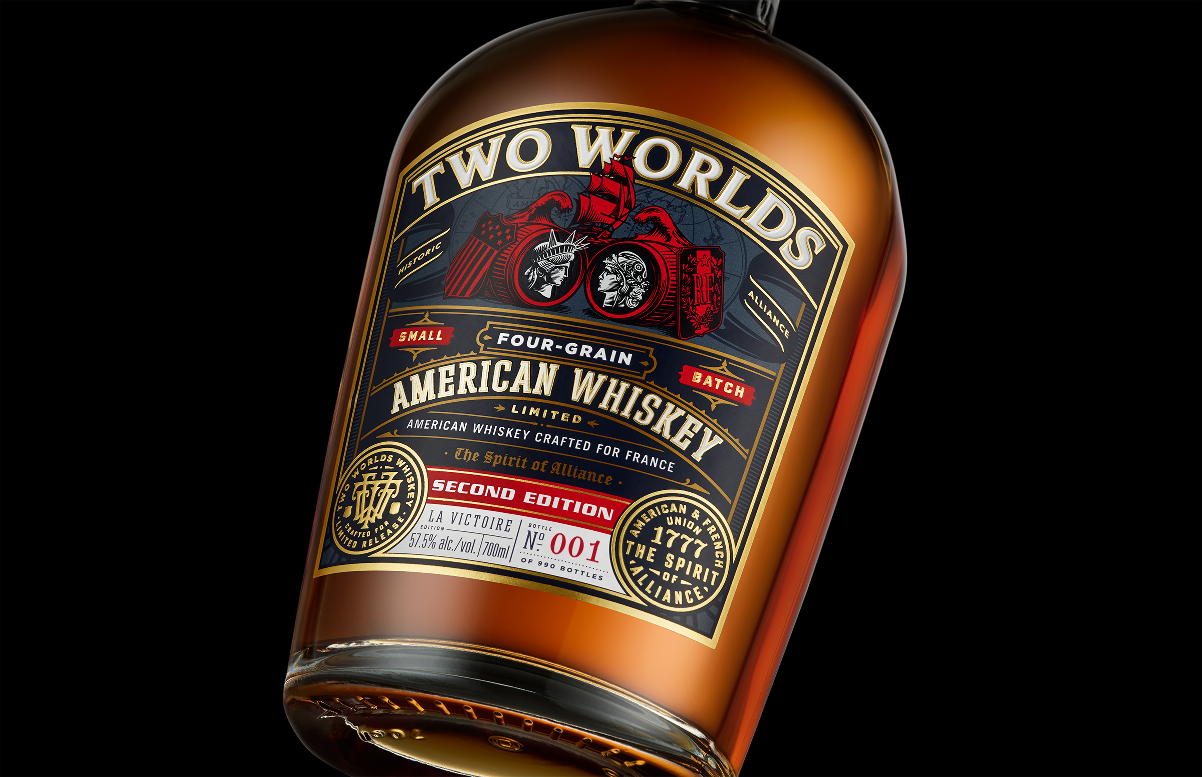 Fondée en 2019, Two Worlds Whiskey sort sa première bouteille « La Victoire » à la fin de l’année 2020. Chaque édition de « La Victoire » est composée de whiskeys distillés et vieillis aux États-Unis. Les bourbons sont soigneusement sélectionnés avant d’être assemblés selon une recette unique, élaborée par la master blender Ashley Barnes et expressément conçue pour plaire au palais exigeants des connaisseurs français.